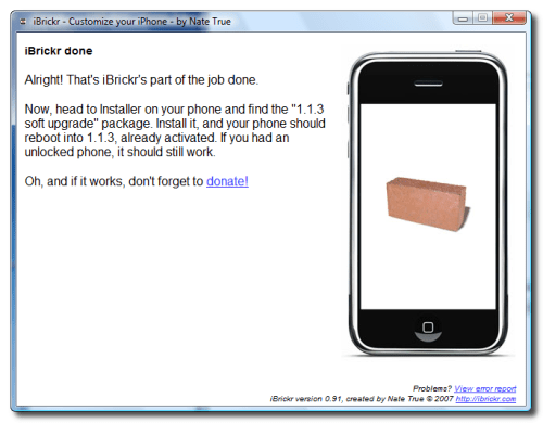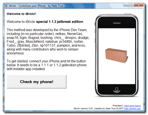 - Download iBrickr Special 1.1.3 Jailbreak Edition from: http://cre.ations.net/blog/post/iphone-113-jailbreak-released