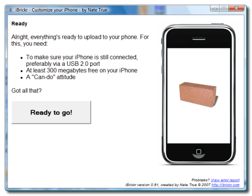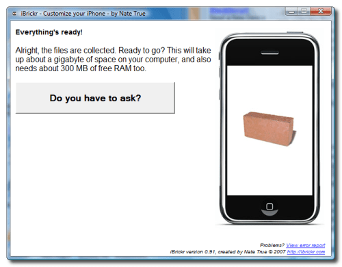 CLEANUP: You should delete the file that iBrickr copies over to your iPhone its 300+ Mb. I'll add instructions as soon as things get less hectic. For now the file is at: ./var/root/media/softupdate