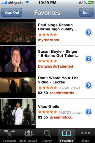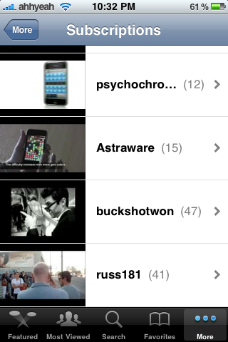 When viewing lists of videos, such as the Most Viewed tab, the title of videos is now allowed two lines of text instead of one. Also, the Bookmarks tab is gone. It is no longer needed now that you can log in and access your subscriptions, playlists and favorites. Overall the app seemed a bit faster along with the new features. Now we just need the ability to record videos from our iPhone and send them right to YouTube!