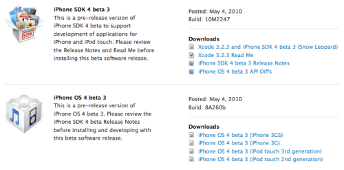 Apple has released the third beta of iPhone OS 4.0 to developers. You can download the firmware and SDK from the iPhone Developer Center.
