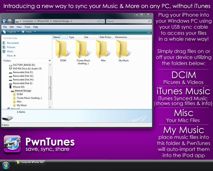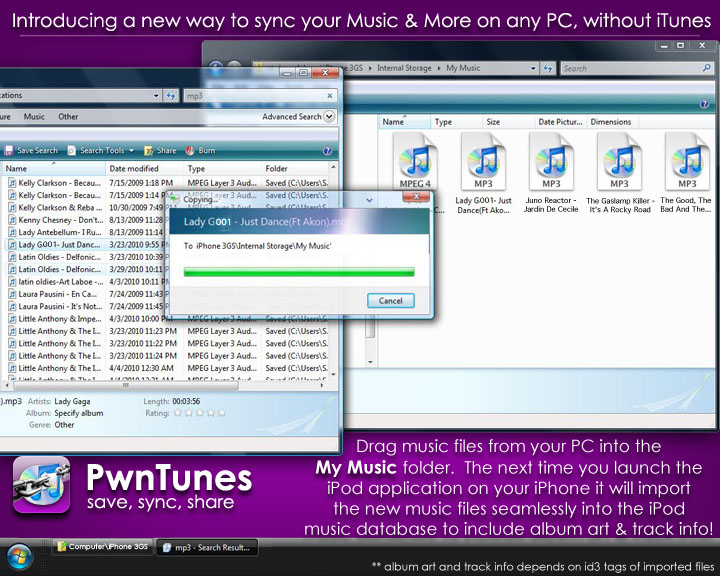 PwnTunes is a new way to sync music to your iPhone without the use of iTunes.