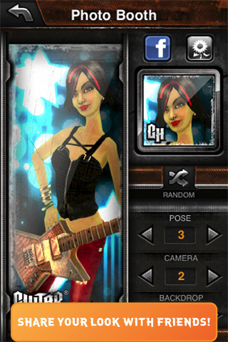 • Show off your personal style by customizing your own full 3D rockstar, and use the Photo Booth to share images with friends on Facebook