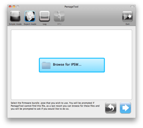 You will be brought to the "Browse for IPSW" page. Click the Browse for IPSW... button.