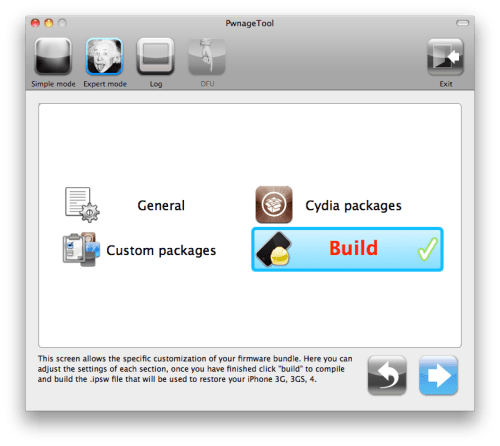 You are now ready to begin the pwnage process! Click the Build button to select it then click the Blue arrow button to begin.
