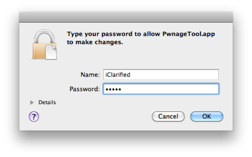 You will be asked to enter your administrator password. Do this then click the OK button.