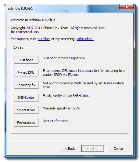 Launch the redsn0w application from the redsn0w folder we just extracted.