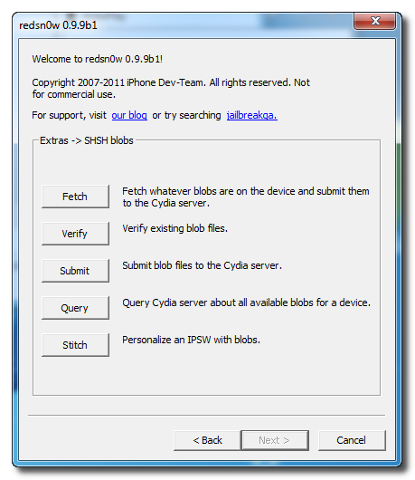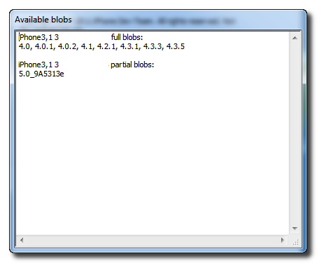 RedSn0w will now query Cydia and display the list of stored blobs.