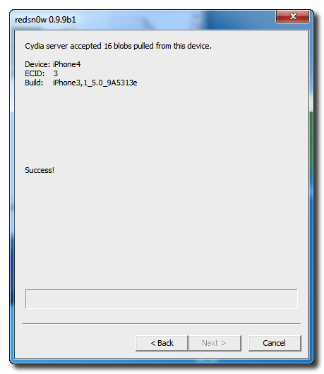 Once this is complete you will be notified that your submission was a success. Click the Back button to return to RedSn0w.