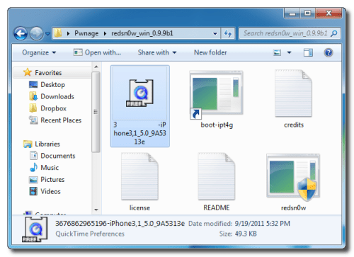 Download RedSn0w from 0.9.9b1 here and place it in the Pwnage folder.