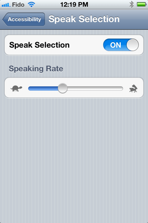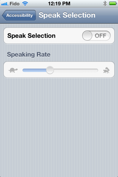 Make sure the Speak Selection switch is turned ON. You can also adjust Siri's speaking rate using the slider.