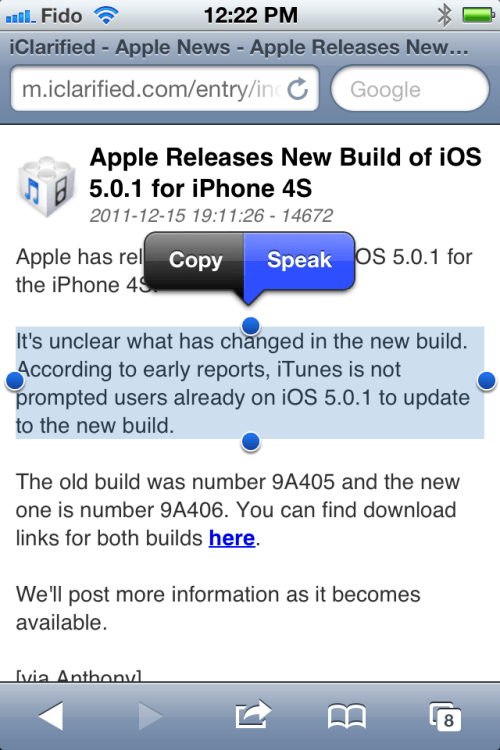 These are instructions on how to make Siri speak selected text on your iPhone 4S.